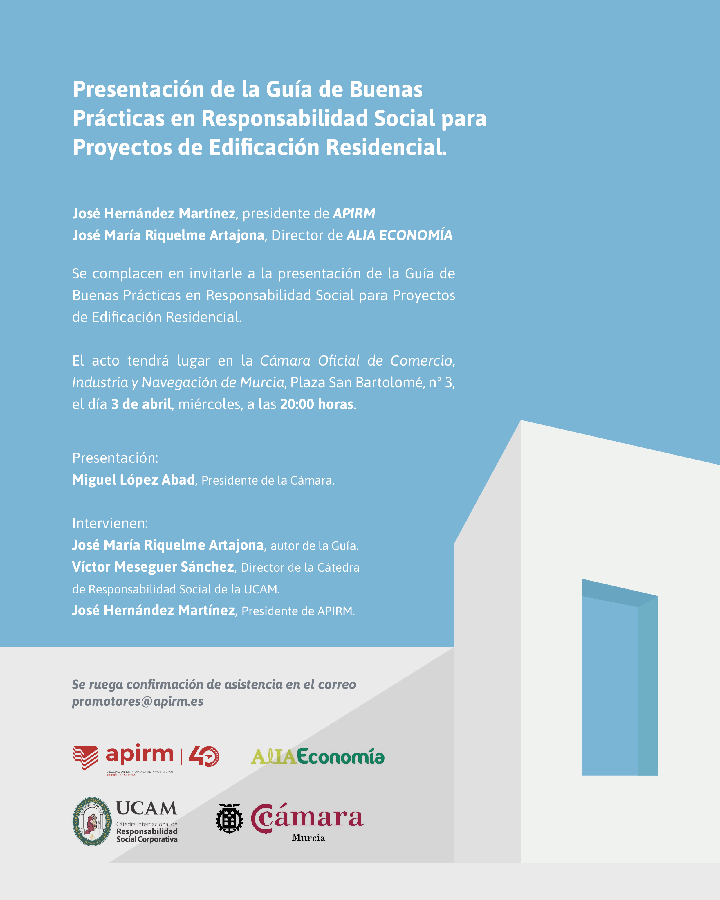 ASOCIACIÓN DE PROMOTORES INMOBILIARIOS DE LA R. DE MURCIA tratará sus datos personales para gestionar su inscripción y participación en el evento. Puede ejercer sus derechos de acceso, rectificación, supresión y portabilidad de sus datos, de limitación y oposición a su tratamiento en la dirección de correo electrónico promotores@apirm.es. Le recomendamos que lea la